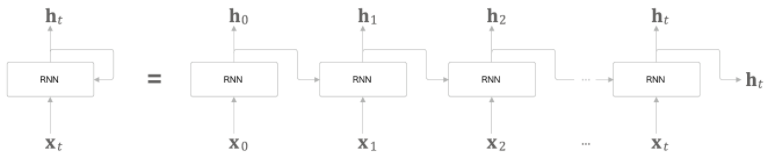 위의 그림은 RNN 한 개에 대해서만 표현된 것이고