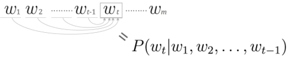 이를 계산할 수 있다면 순서를 고려한 언어 모델의 동시 확률 P(w1, ..... , wm)을 구할 수 있습니다.