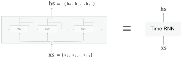 T개 단계분의 작업을 한꺼번에 처리하는 계층을 'Time RNN 계층'이라고 합니다.
