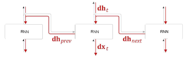 앞서 순전파부분 설명에서 '지금 설명하고 있는 RNN계층은 본질적으로 하나의 계층을 시간적으로 표현한 것이다' 라고 했습니다.