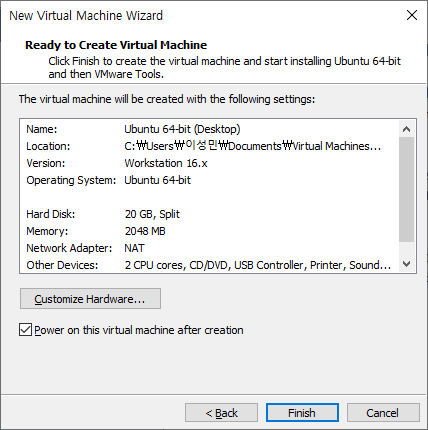 가상환경 : vmware workstation 16 community player