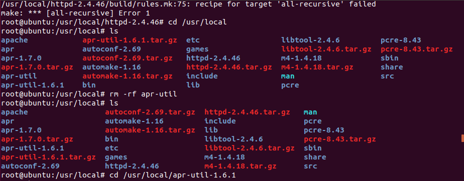 apr-util 디렉터리를 다시 만들고