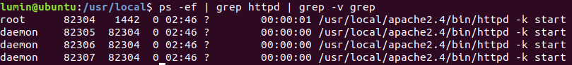 $ ps -ef|grep httpd|grep -v grep