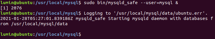 $ bin/mysqld_safe --user=mysql &