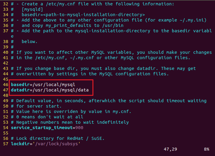 /etc/init.d/mysqld를 열어서 basedir와 datadir를 설정해줍니다.