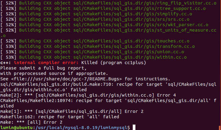 이제 cmake와 make명령어를 이용해서 mysql을 설치합니다.