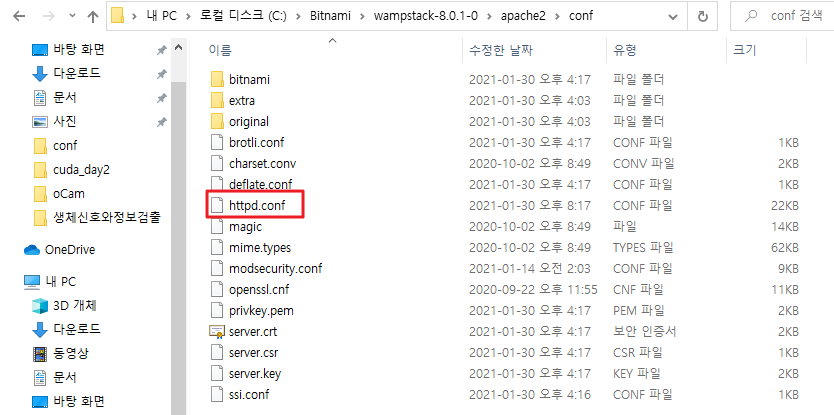 window 환경에서는 httpd.conf의 확장자를 잠시. txt로 바꿔서 수정하겠습니다.