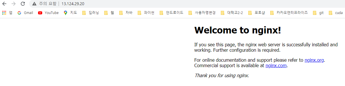 이제 위치 무관으로 80번 포트로 접속할 수 있게 허용했으므로 검색창에 인스턴스의 공인 ip주소와 포트번호를 입력해줍니다.