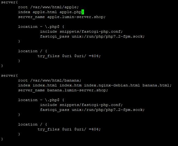 위의 코드는 앞서 만든 apple, banana 두 개의 서브 도메인에 대한 코드이며,