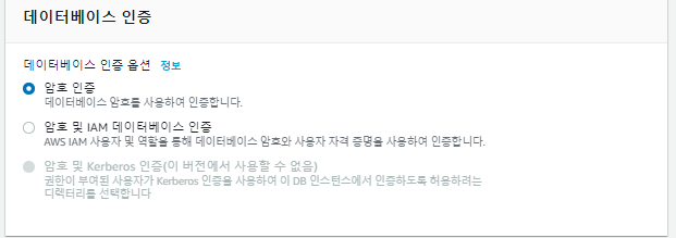 필자는 데이터 베이스 인증을 암호 인증으로 선택했습니다.